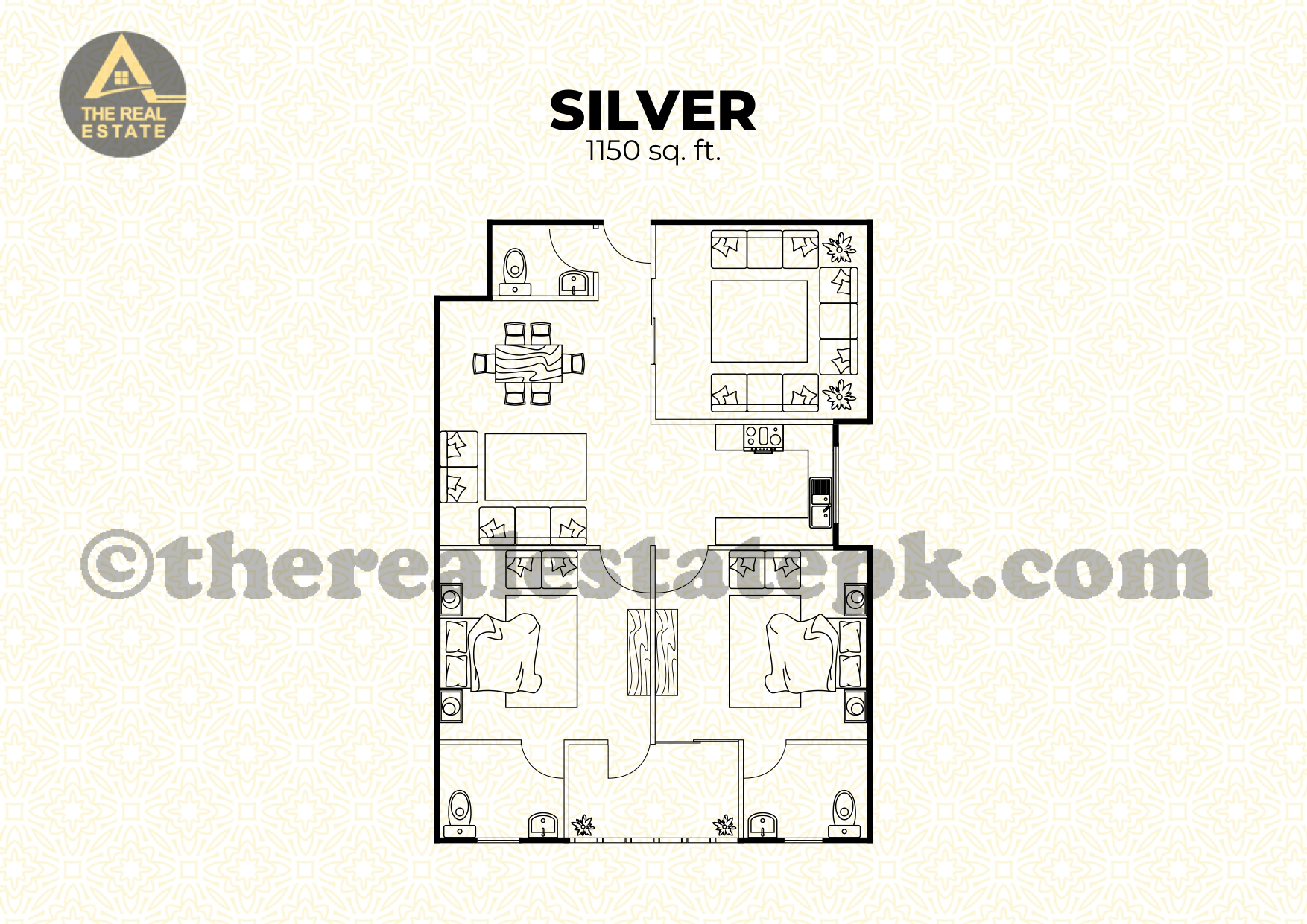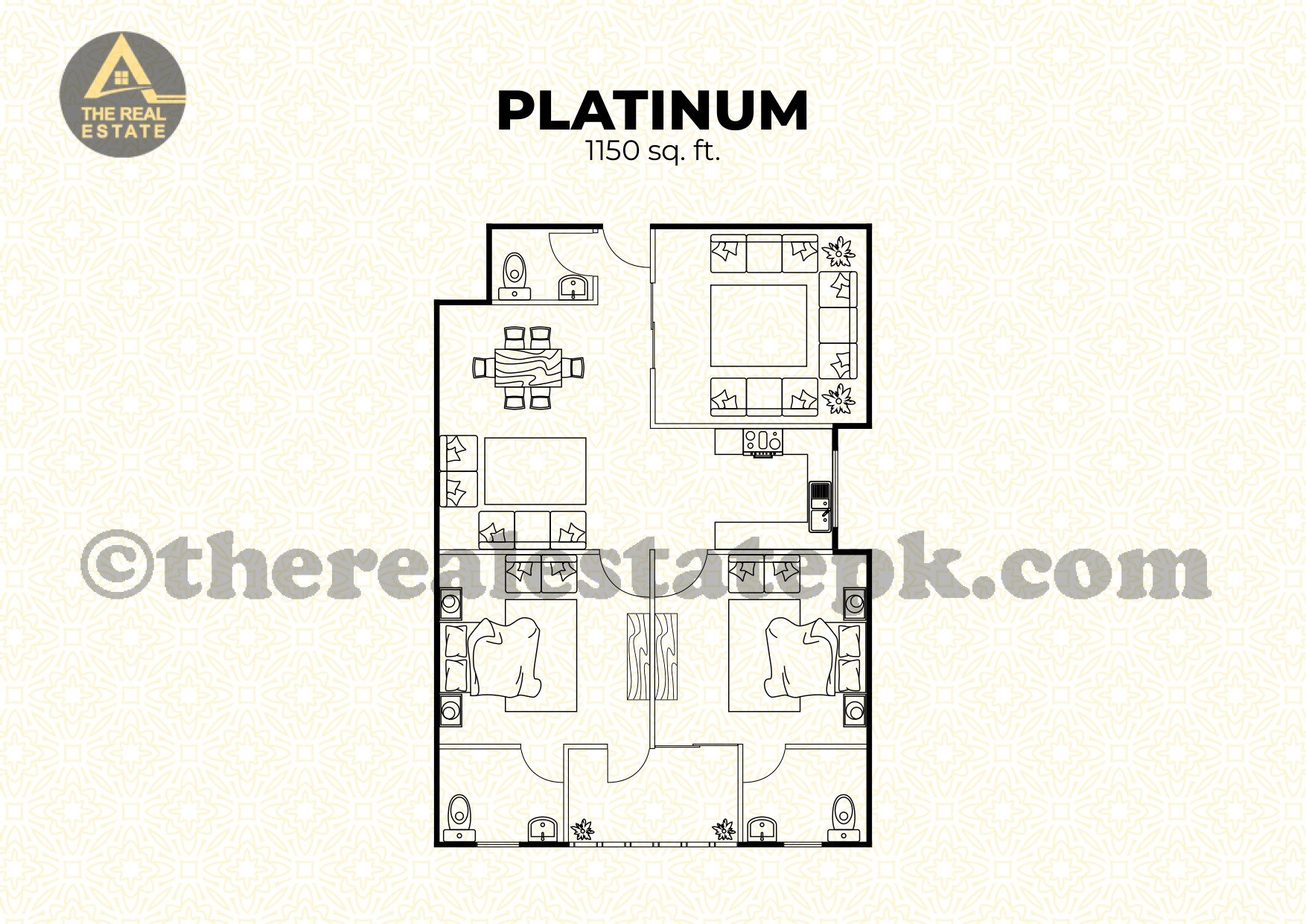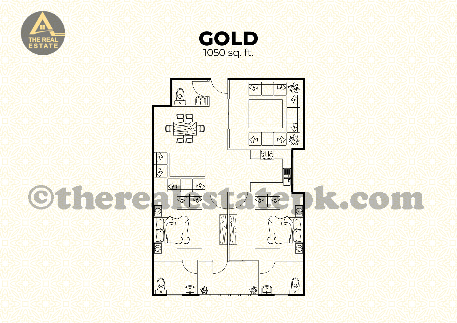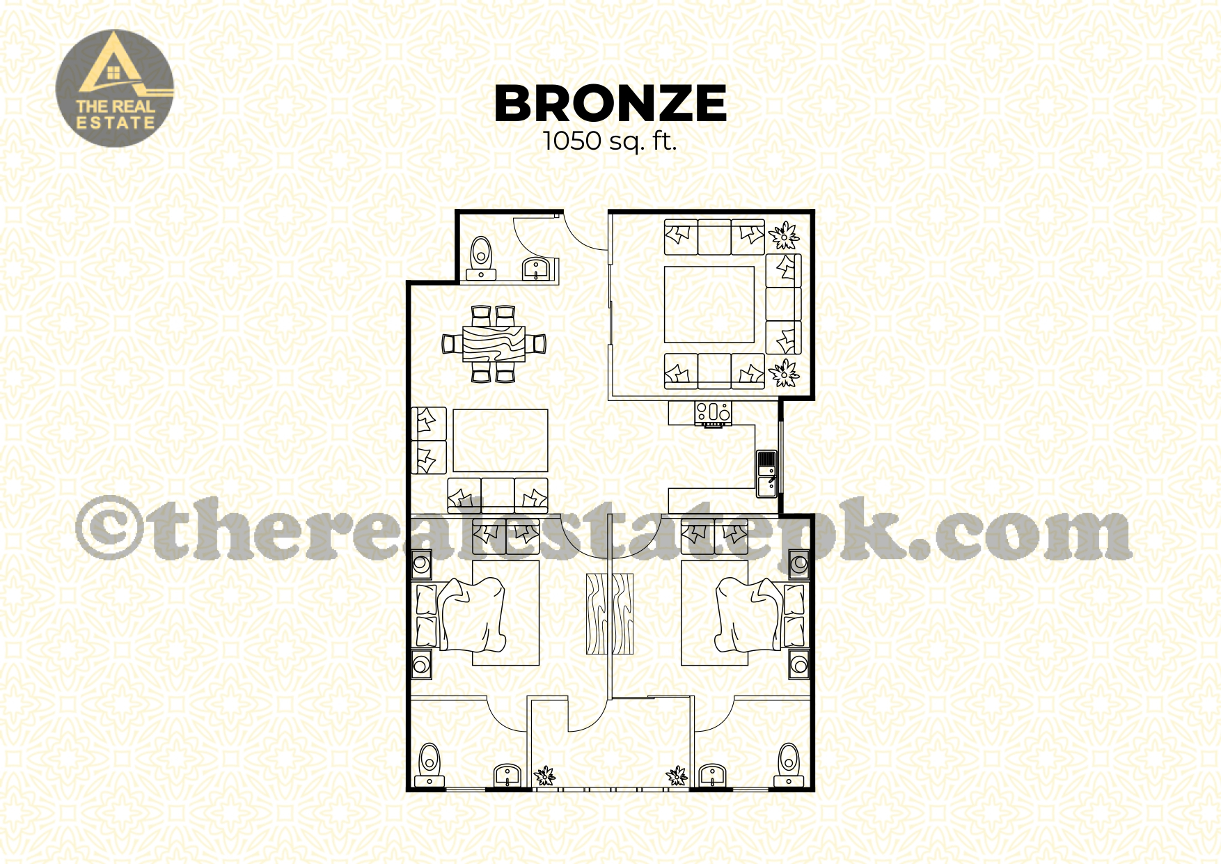 Affordable yet stylish 2-bedroom apartment including drawing and dining rooms, lounge, 3 bathrooms with a powder room, kitchen, and terrace — ideal for budget-conscious families without compromising comfort.
