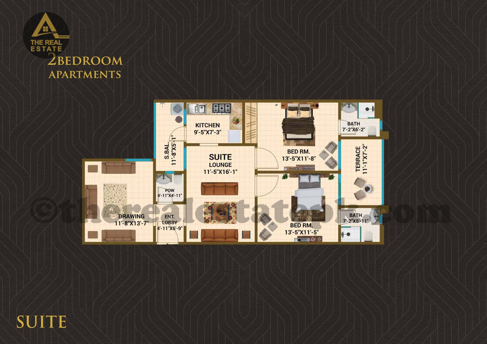 A compact and thoughtfully designed 2-bedroom suite offering a spacious lounge, modern kitchen, attached bathrooms, and a balcony for ventilation. Ideal for small families looking for affordability and comfort in a prime location.